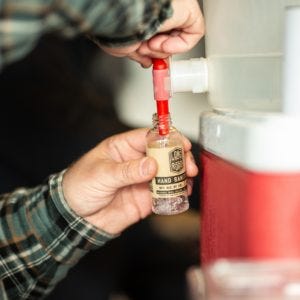 Because it is hard to know how long the hand sanitizer trade will last for distillers, our family business is avoiding high fixed cost investments. Long Road’s normal bottling systems don’t work for the small hand sanitizer bottles, so our distillers are filling each bottle by hand. Rather than bulk ordering labels from our usual printers, the managers are using label sheets they can make on their office printer.